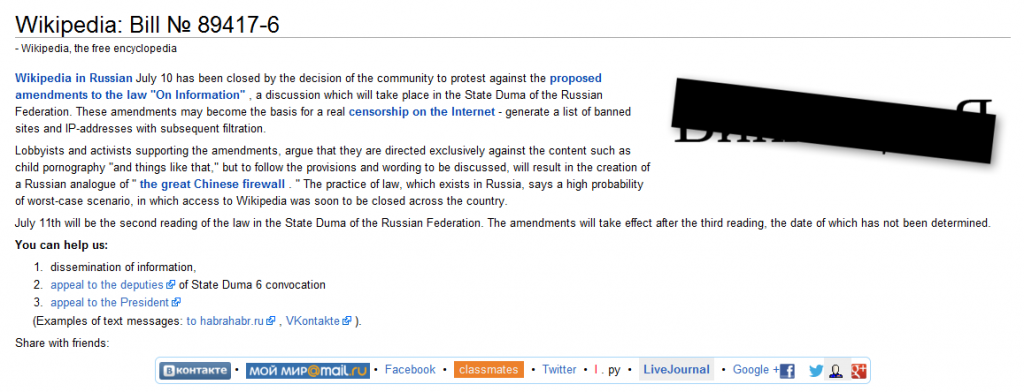 Wikipedia down in protest in Russia