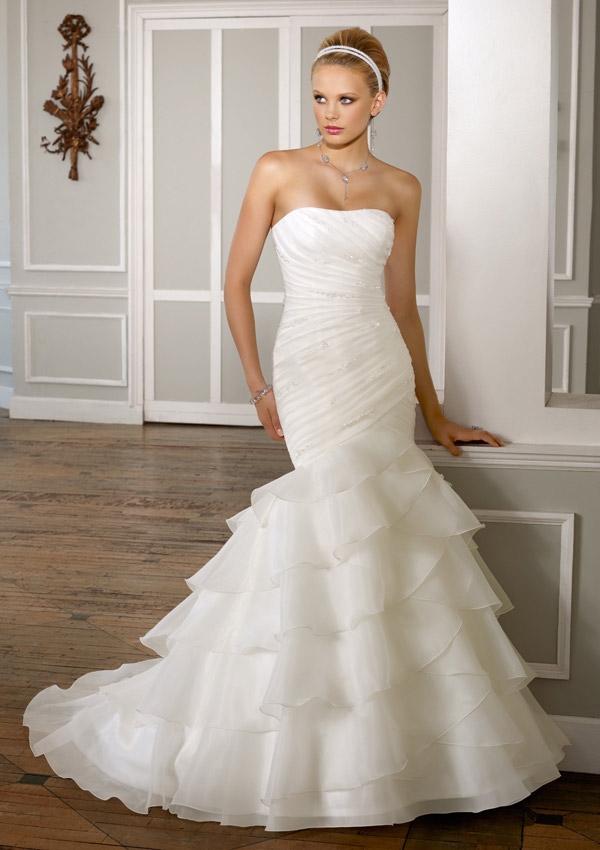 Organza Strapless Wedding Dress with Ruffled Skirt | Style 1606 | Morilee