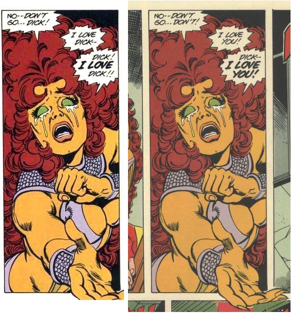 … left) and the original panel from “The New Teen Titans” #18 (right
