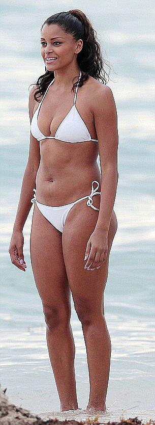 Claudia Jordan sexy in wite bikini in Miami beach