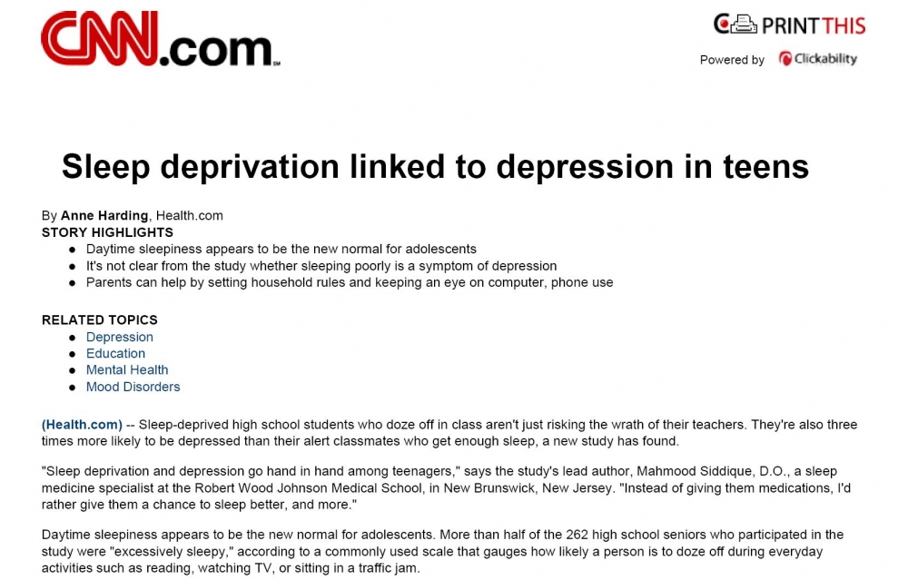 Sleep Deprivation Linked to Teen Depression – Depression – Health.com