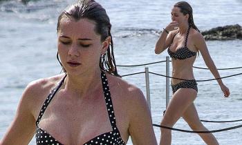 Immy Waterhouse shows her curves in skimpy blue bikini on the beach …