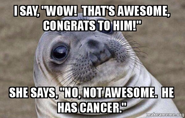 say, “Wow! That’s awesome, congrats to him!” She says, “No, not …