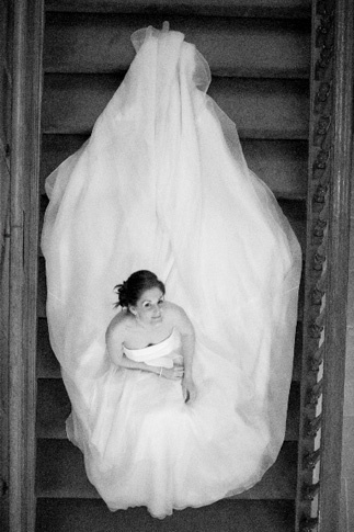 photo of the train with the bride at the bottom of the stairs and the …