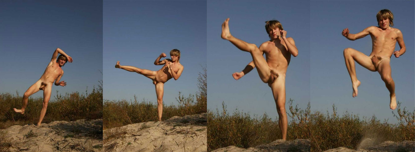 Kinky girl shows her pussy with a karate kick – NakedOnTheStreets.com