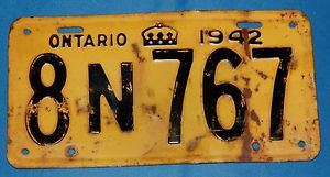 Vintage Car License Plate Ontario 1942 8N767 | eBay