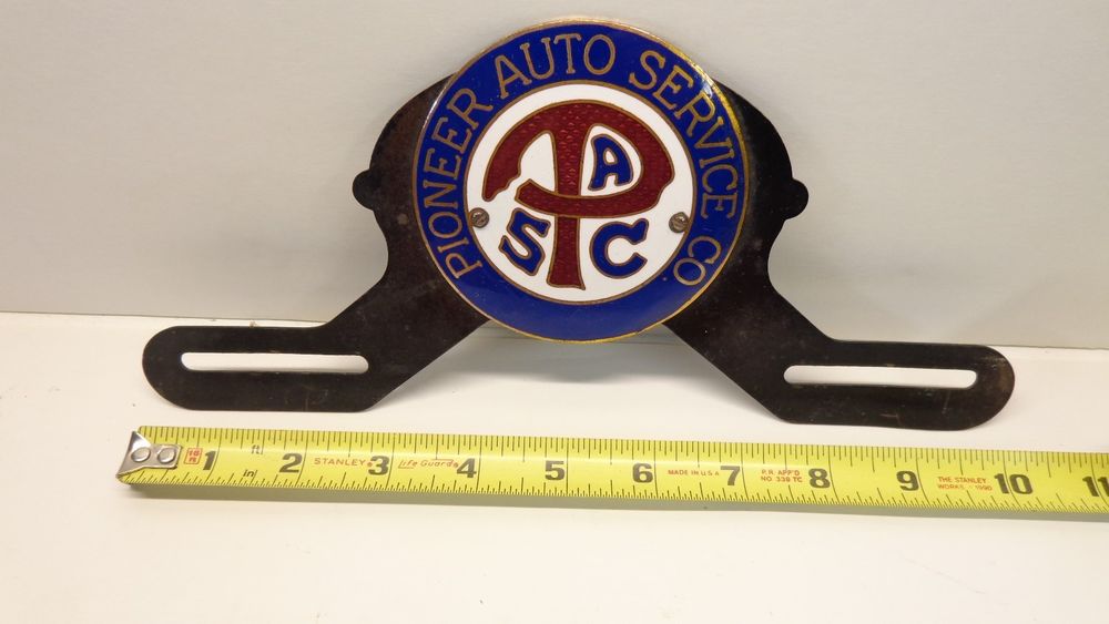 Antique Car License Plate Topper Porcelain Sign Pioneer Auto Service …