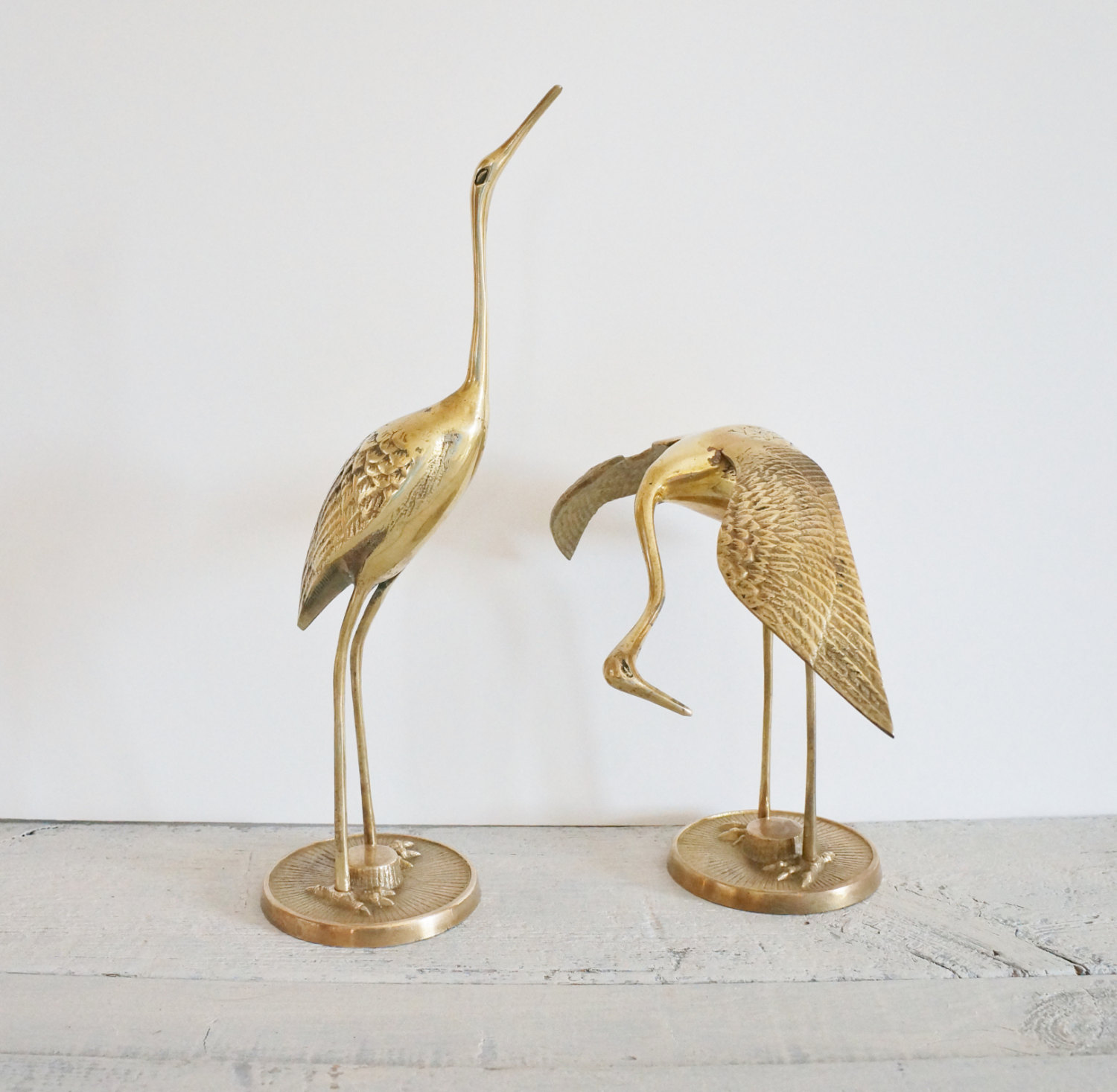 Items similar to VIntage Brass Crane Statues, Mid Century Brass Figurines, Hollywood Regency …
