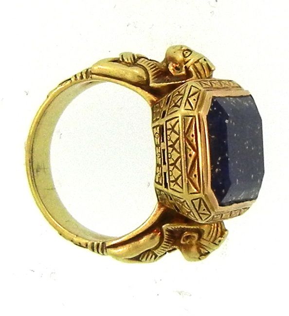 Late Victorian Egyptian Revival Gold Ring with Lapis Lazuli (side view …