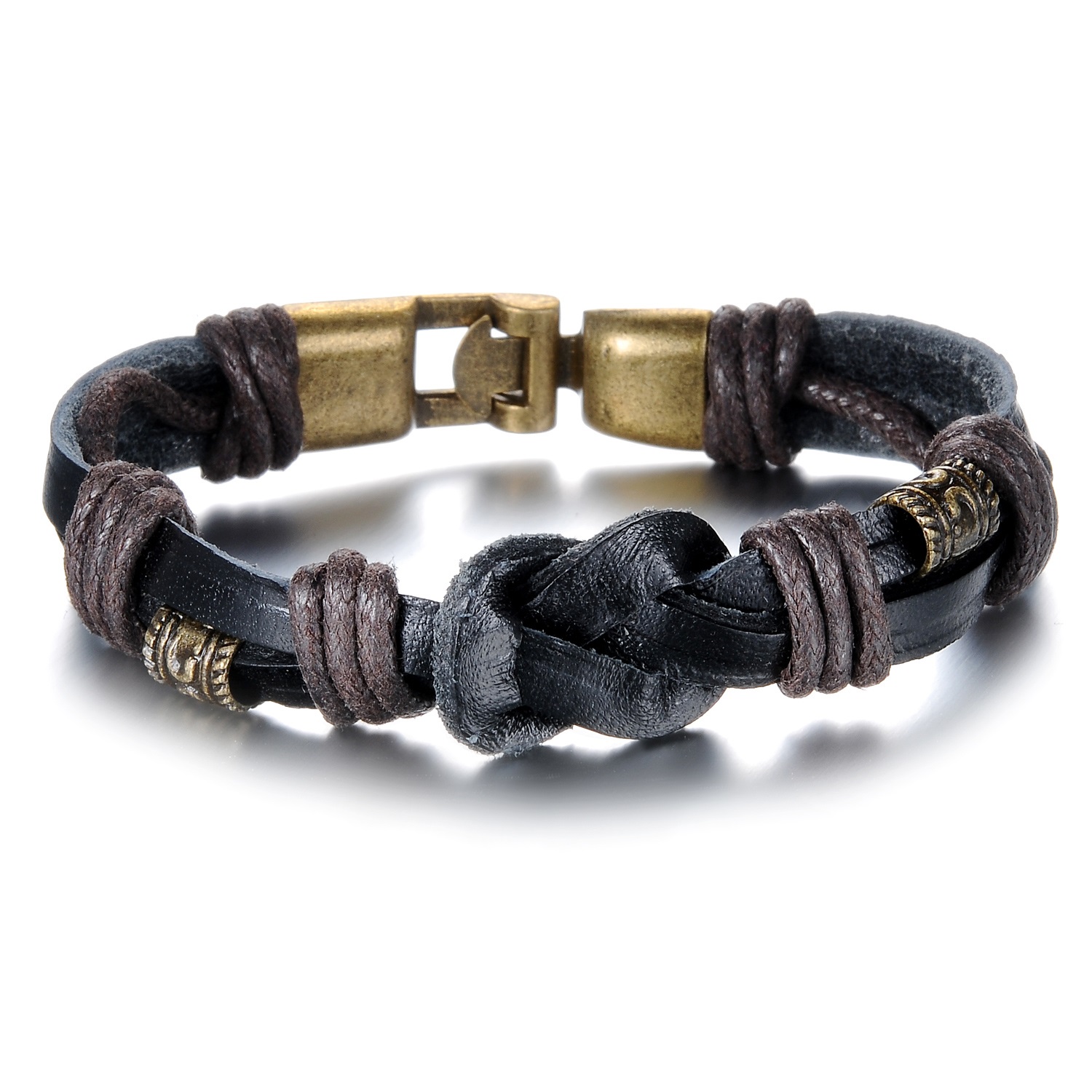 Vintage Leather Braided Bracelet with Bronze Alloy Clasp | Yoyoon …