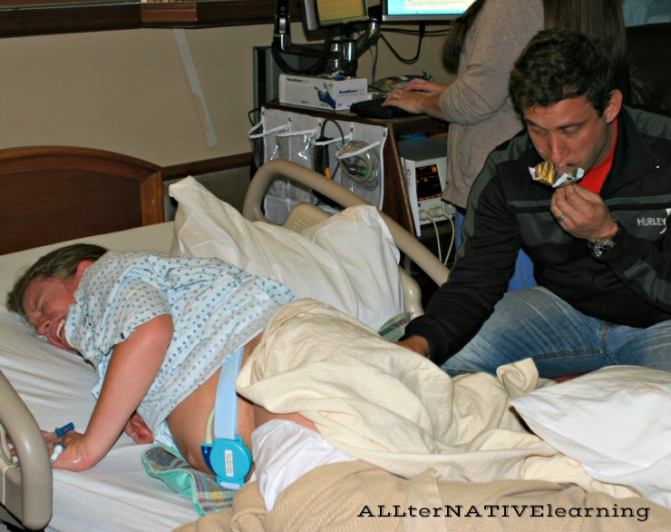 Husband eating for the first time all day during childbirth coaching