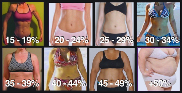 Body Fat Percentage Women Chart Womens visual bodyfat chart
